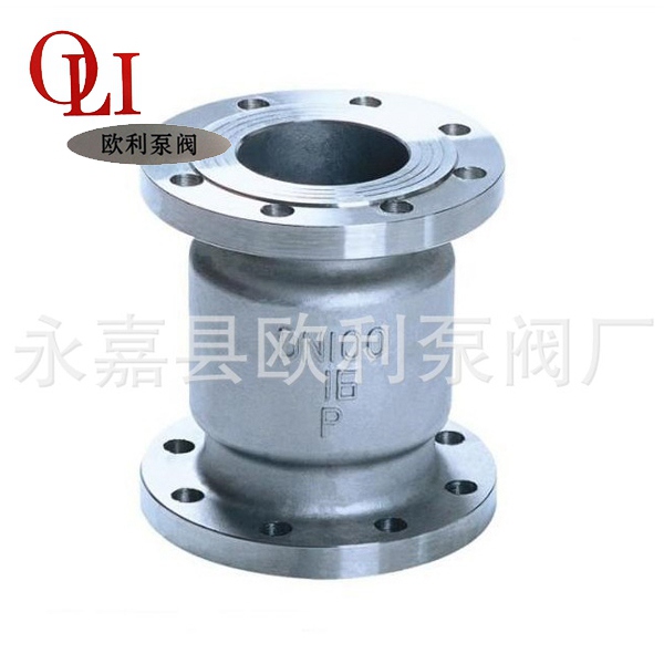 Vertical check valve is suitable for the small caliber pipeline, all kinds of pressure,temperature and medium control connect or disconnect the line media rely on the valve opening and closing device; the self weight and the fluid pressure differential in the realization of automatically to prevent fluid backflow pipeline